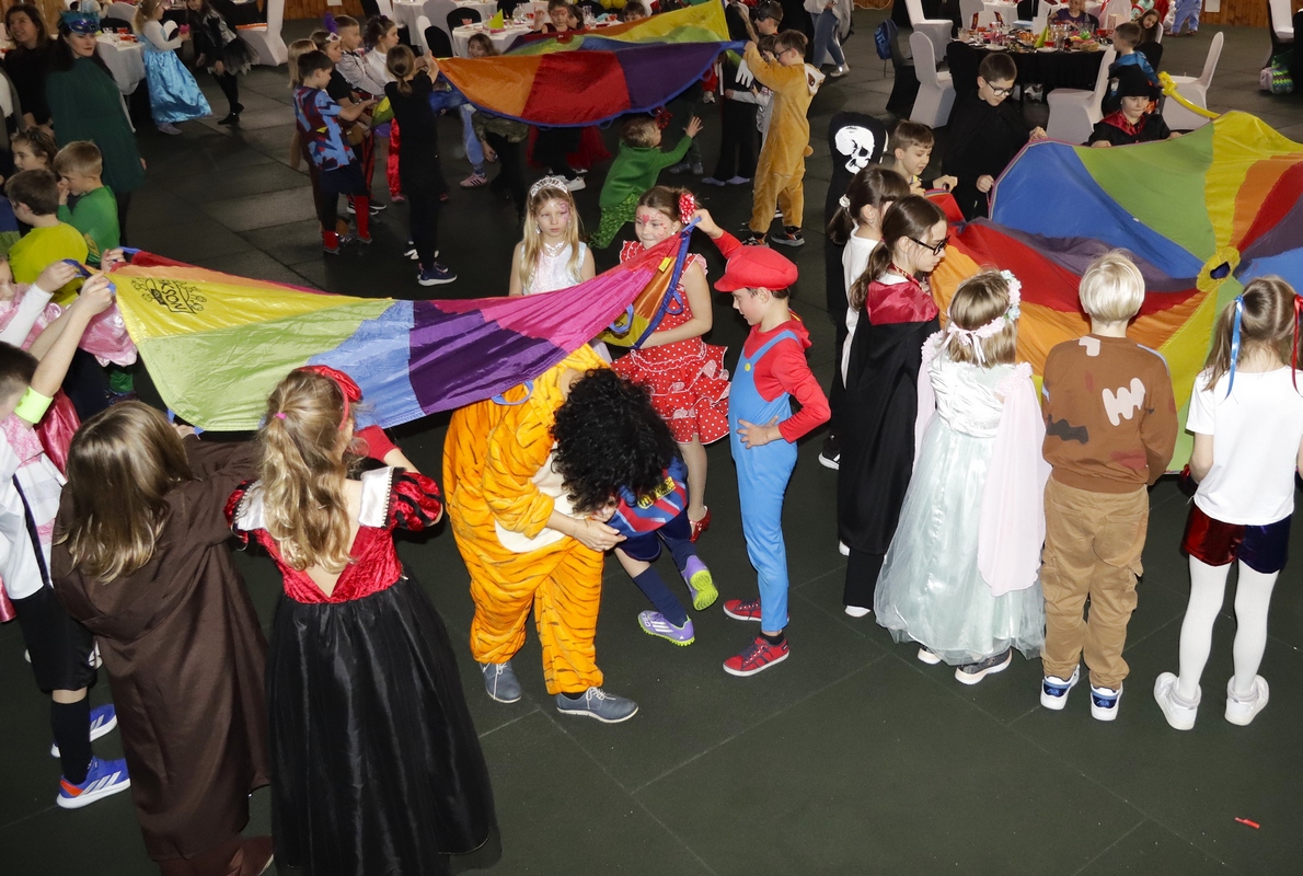 W dniu 29 stycznia 2026 roku, tuż przed feriami, odbył się wyjątkowy bal karnawałowy dla uczniów klas 0-3, który stanowił doskonałe zakończenie I semestru nauki. Wydarzenie miało miejsce w Kids Arenie, gdzie na dzieci czekały liczne atrakcje. W programie balu znalazły się wspaniałe zabawy, które dostarczyły dzieciom wiele radości i uśmiechu. Uczestnicy mogli również skosztować różnorodnych smakołyków przygotowanych na poczęstunek. Kulminacyjnym punktem wydarzenia było przedstawienie w wykonaniu Teatru Gwitajcie, które zachwyciło młodych widzów i wprowadziło ich w magiczny świat sztuki.