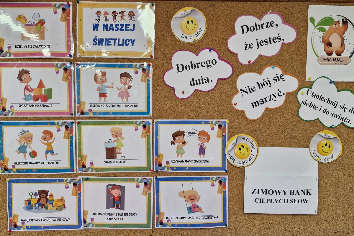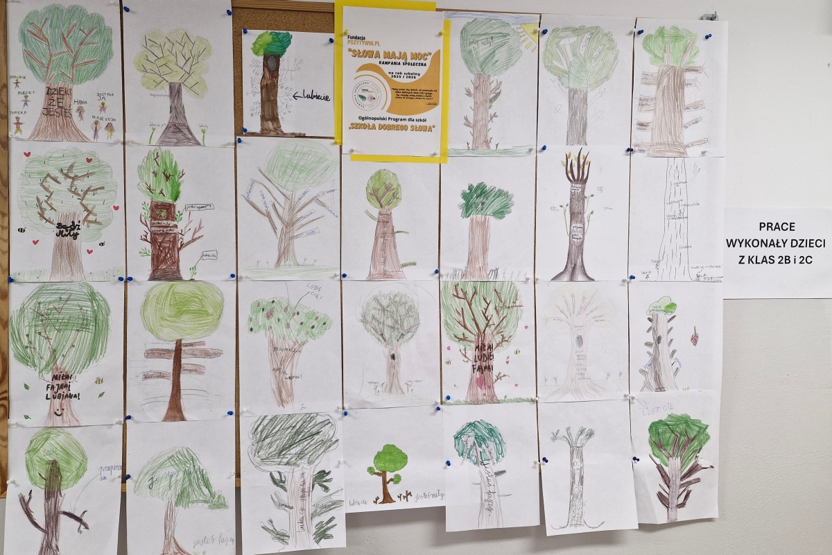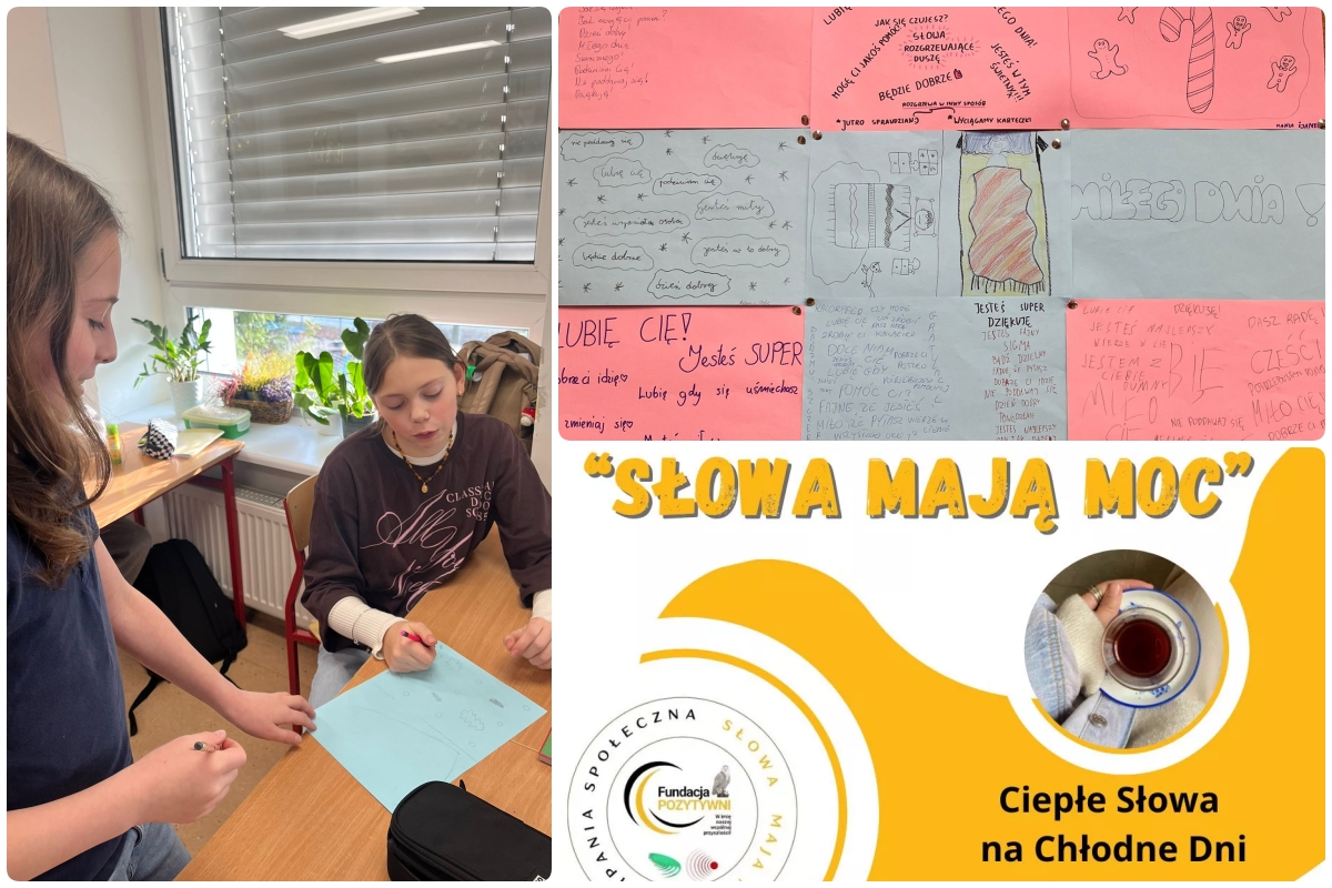 Podczas zimowych dni zadbaliśmy o ciepło, dobry nastrój. W styczniu w klasach robiliśmy pudełka z dobrymi słowami do zabrania ze sobą. Miło zacząć dzień życzliwym, dobrym słowem. Klasa 6a wykonała Kocyk Słowny z krótkimi zdaniami, które wzmacniają i dodają otuchy. W świetlicy klas starszych powstała Strefa Dobrego Słowa, a w świetlicy klas młodszych dzieci przygotowały Zimowy Bank Ciepłych Słów. Klasy drugie podczas warsztatów z rozpoznawania emocji uczyły się współpracy w grupie opartej na empatii, wzajemnym szacunku. Teraz wykonujemy Słowne Kapsuły Czasu. To działanie, w którym uczniowie zrobią mini-kapsuły słów, które otworzą wraz z powitaniem wiosny. To nie będzie zwykła kapsuła czasu, bo chodzi nam o słowa, które mają moc. Te ważne słowa będą nas wspierać, dodawać odwagi i pomogą budować koleżeńskie relacje.