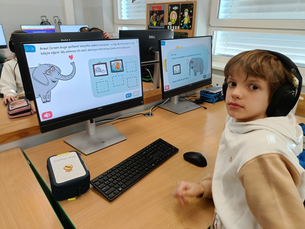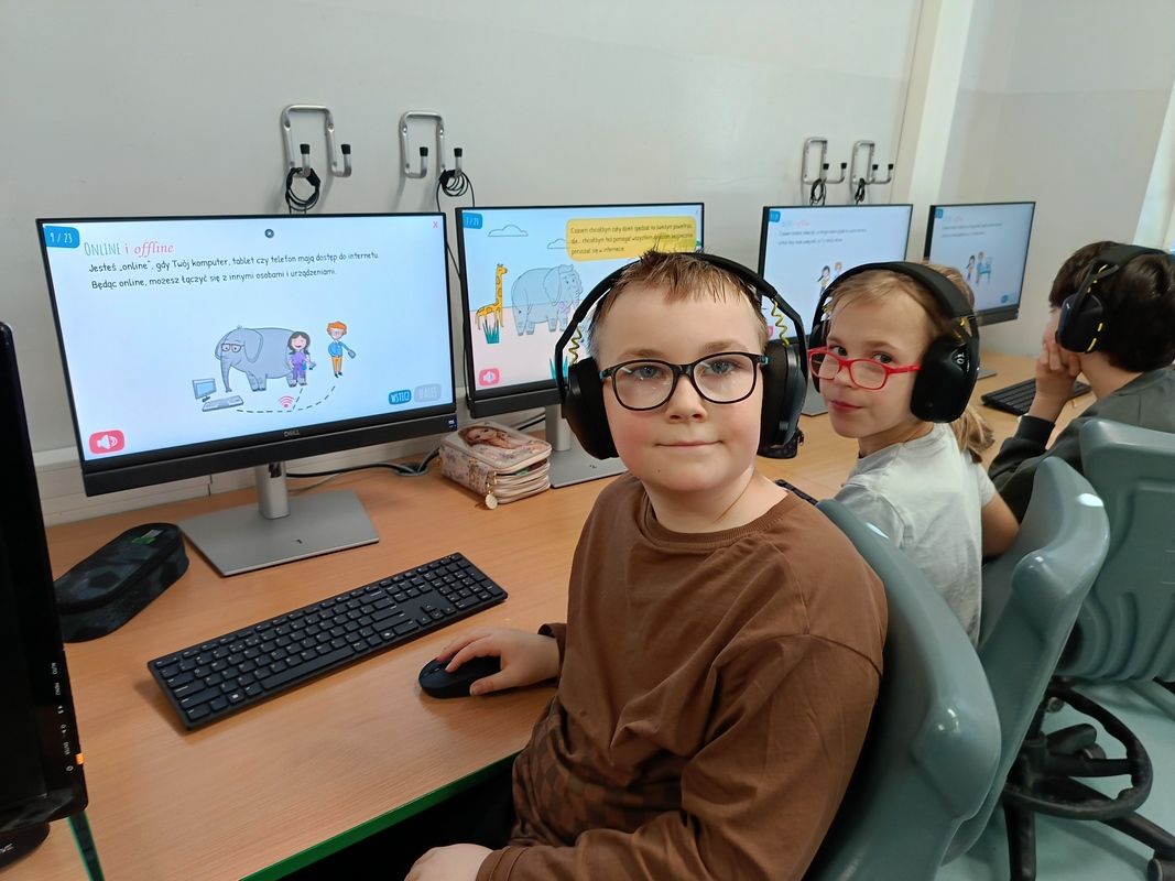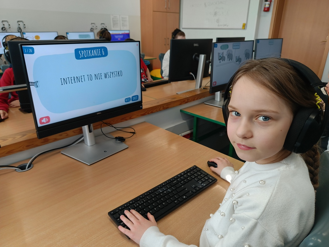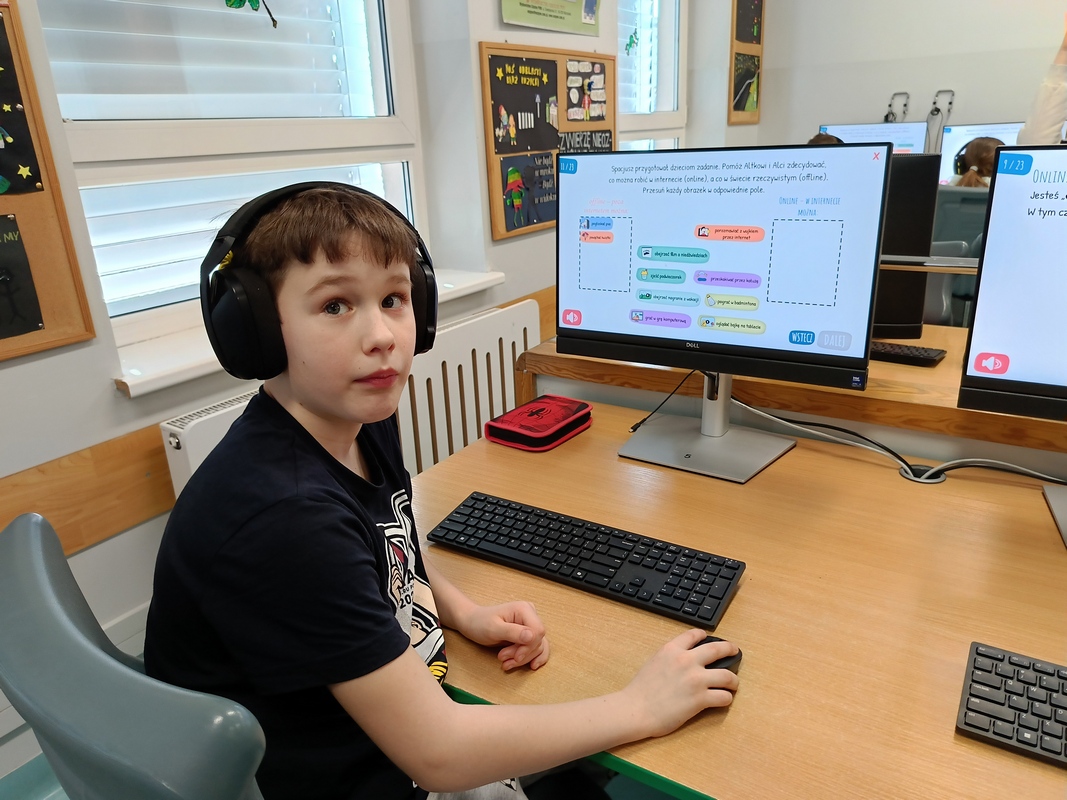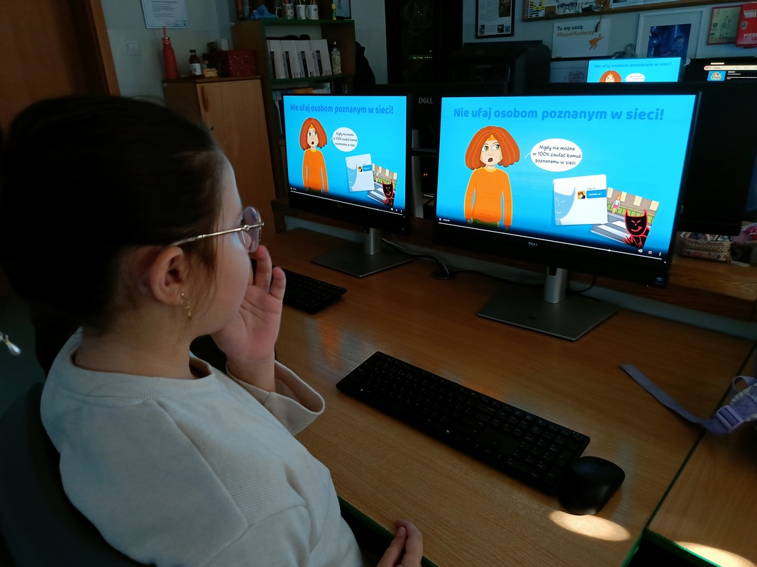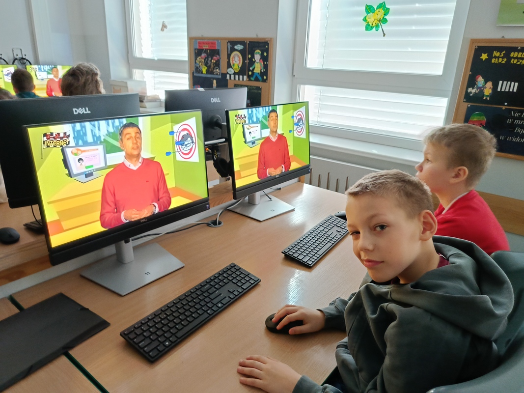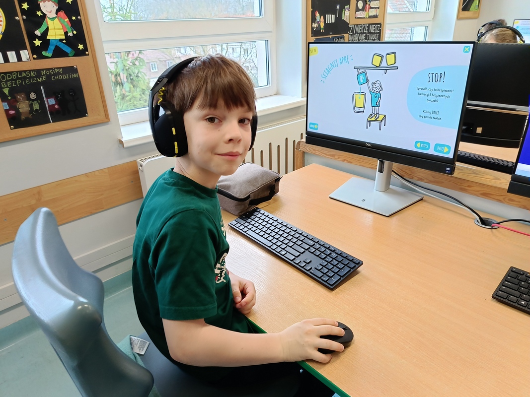 Drugoklasiści przenieśli się do Internetowej Szkoły słonia Spacjusza. Kolorowy, interaktywny, czytany przez lektora kurs okazał się strzałem w dziesiątkę – dzieci z łatwością przyswajały wiedzę o zagrożeniach, zasadach netykiety, reagowaniu na trudne sytuacje i rozpoznawaniu treści nieodpowiednich dla ich wieku. Zajęcia były nie tylko pouczające, ale też bardzo angażujące.