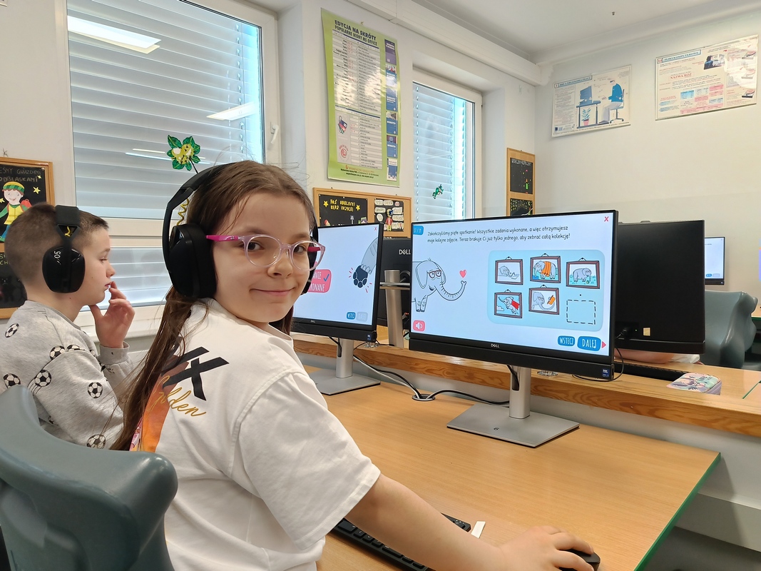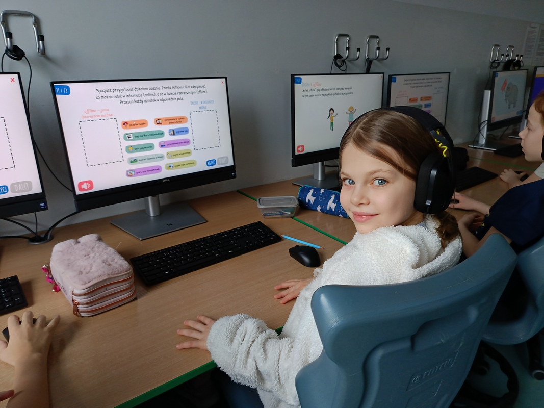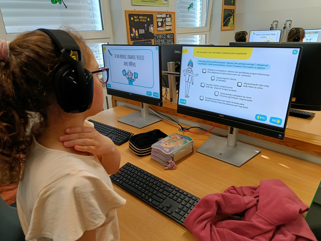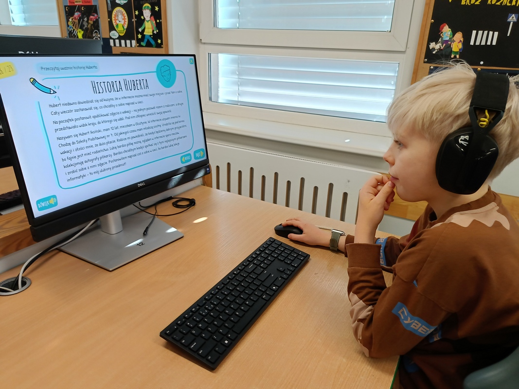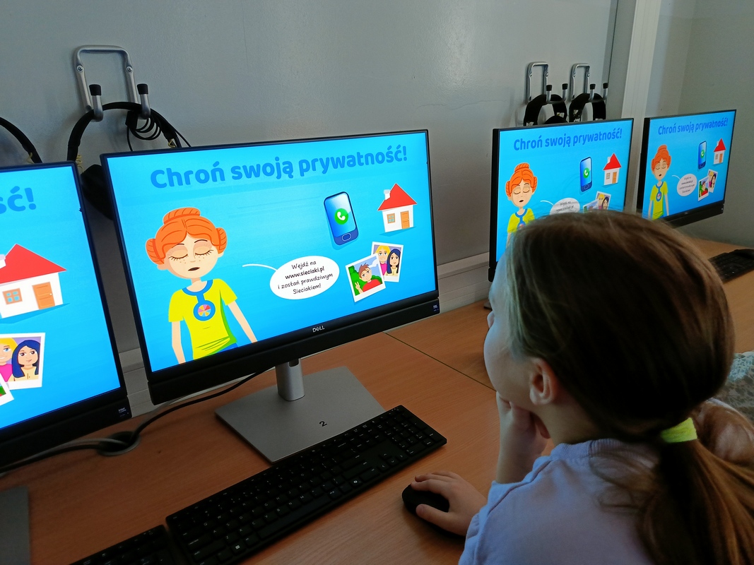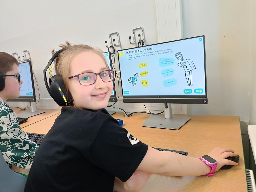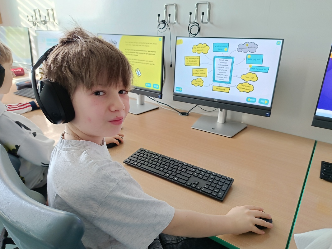 Drugoklasiści przenieśli się do Internetowej Szkoły słonia Spacjusza. Kolorowy, interaktywny, czytany przez lektora kurs okazał się strzałem w dziesiątkę – dzieci z łatwością przyswajały wiedzę o zagrożeniach, zasadach netykiety, reagowaniu na trudne sytuacje i rozpoznawaniu treści nieodpowiednich dla ich wieku. Zajęcia były nie tylko pouczające, ale też bardzo angażujące.