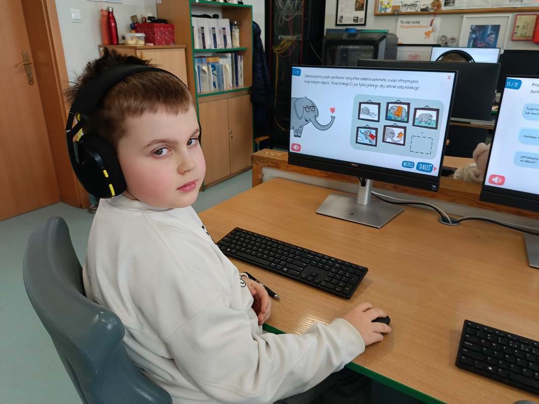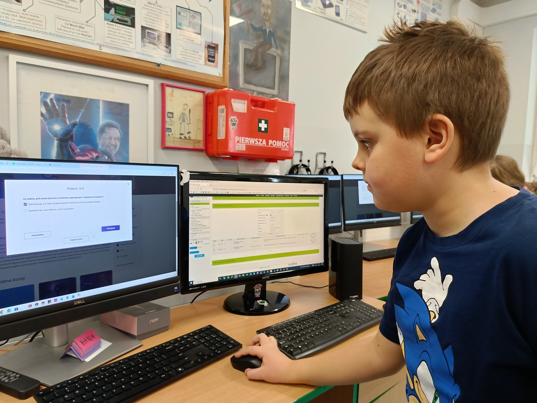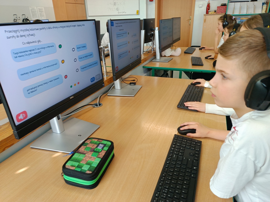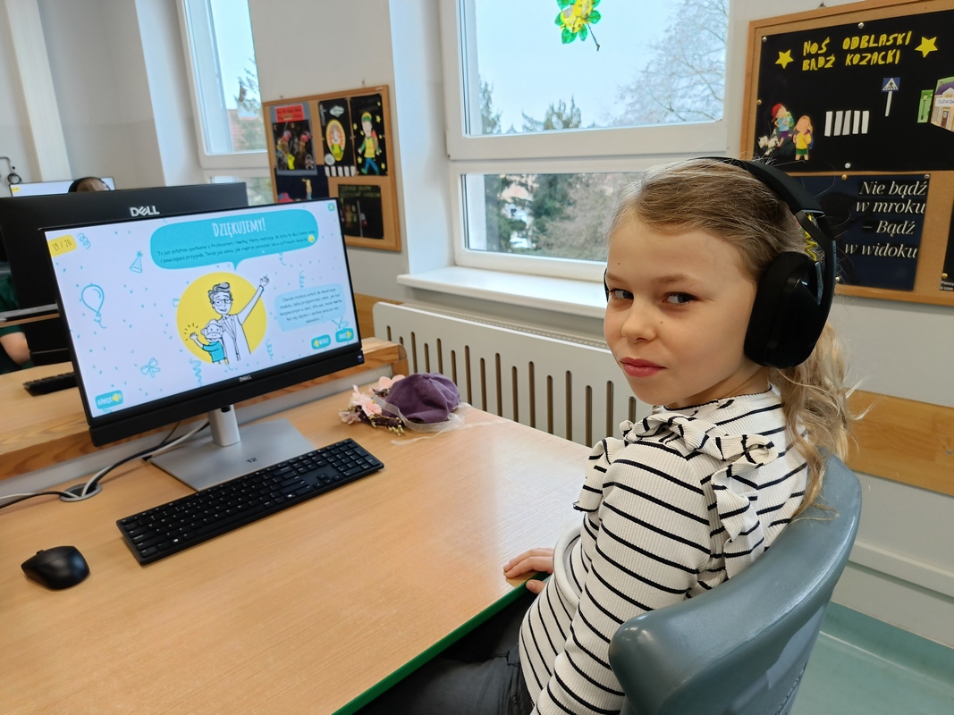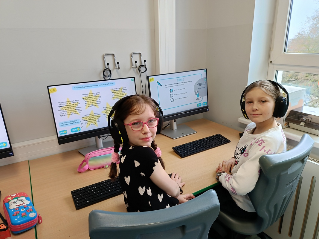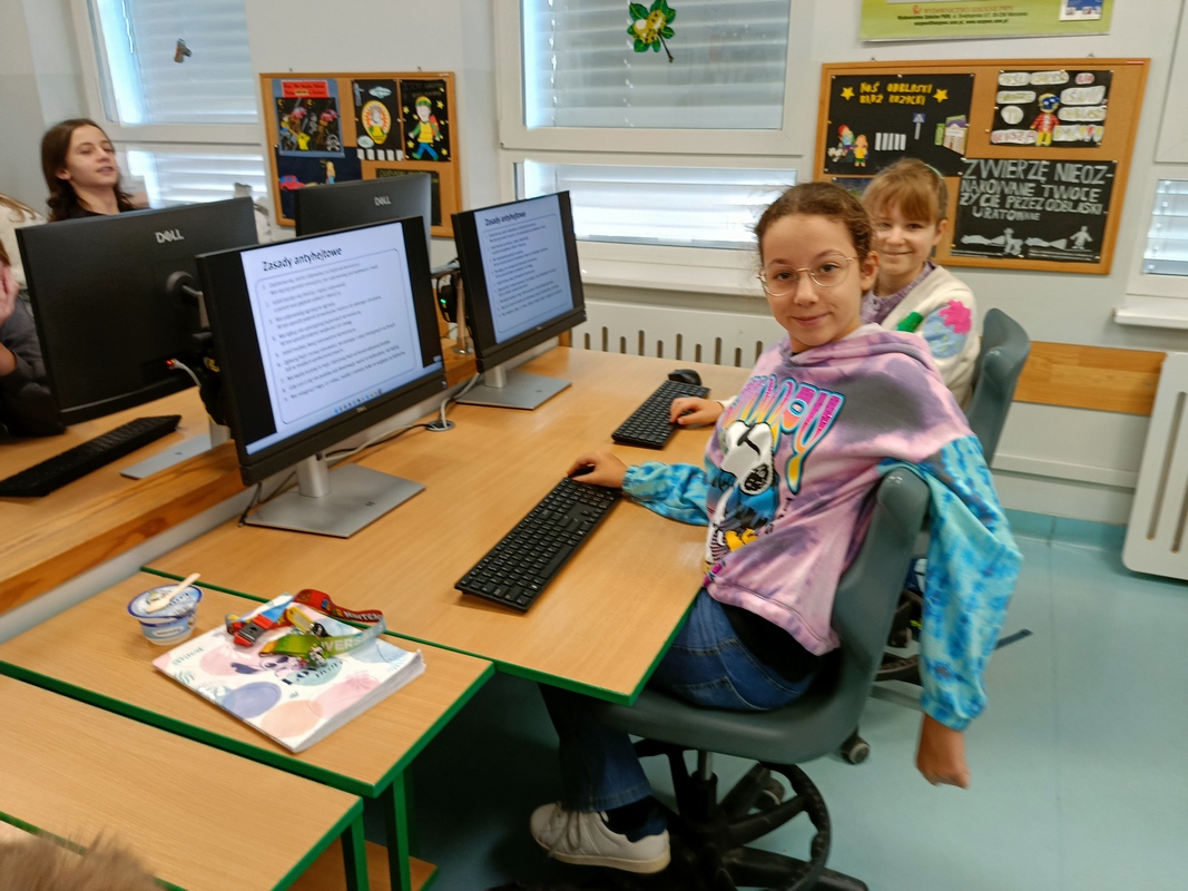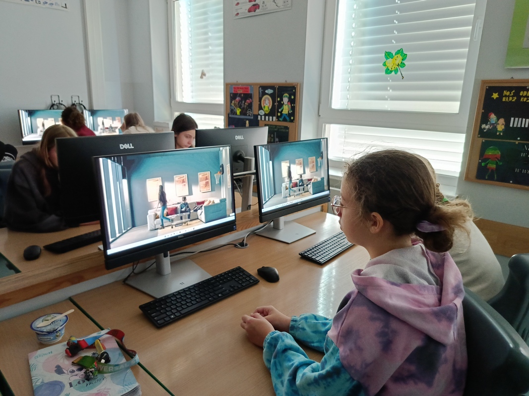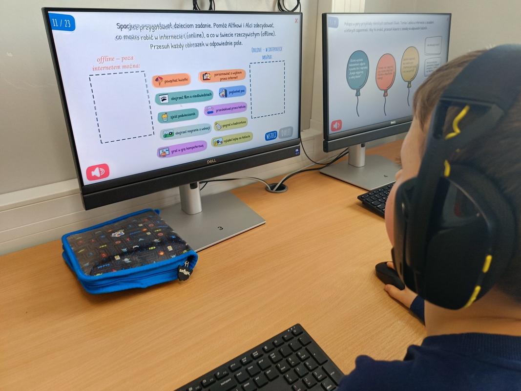 Drugoklasiści przenieśli się do Internetowej Szkoły słonia Spacjusza. Kolorowy, interaktywny, czytany przez lektora kurs okazał się strzałem w dziesiątkę – dzieci z łatwością przyswajały wiedzę o zagrożeniach, zasadach netykiety, reagowaniu na trudne sytuacje i rozpoznawaniu treści nieodpowiednich dla ich wieku. Zajęcia były nie tylko pouczające, ale też bardzo angażujące.