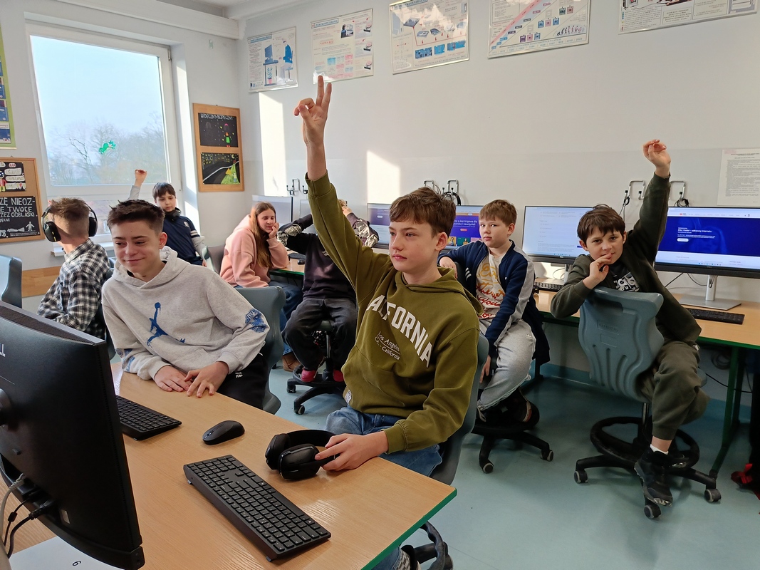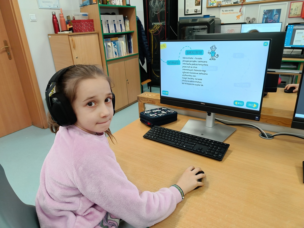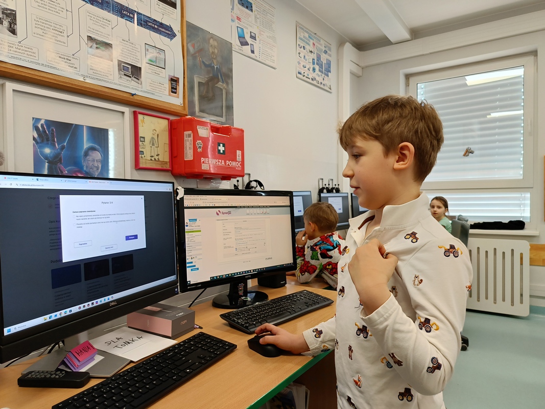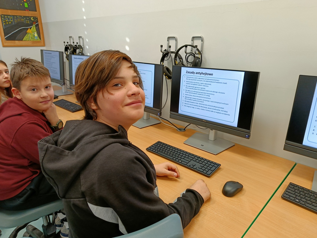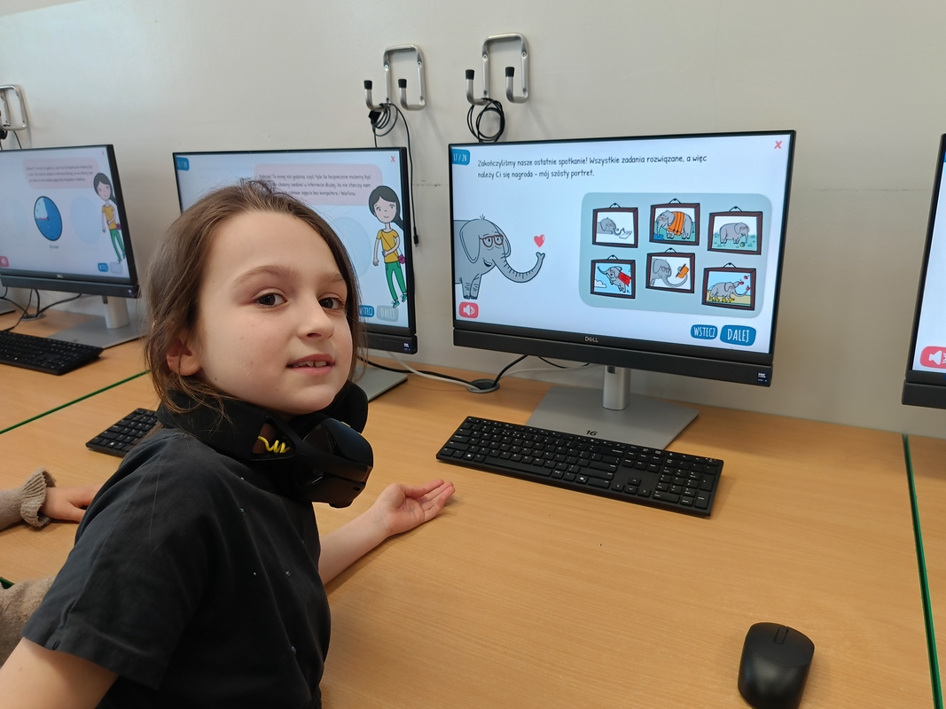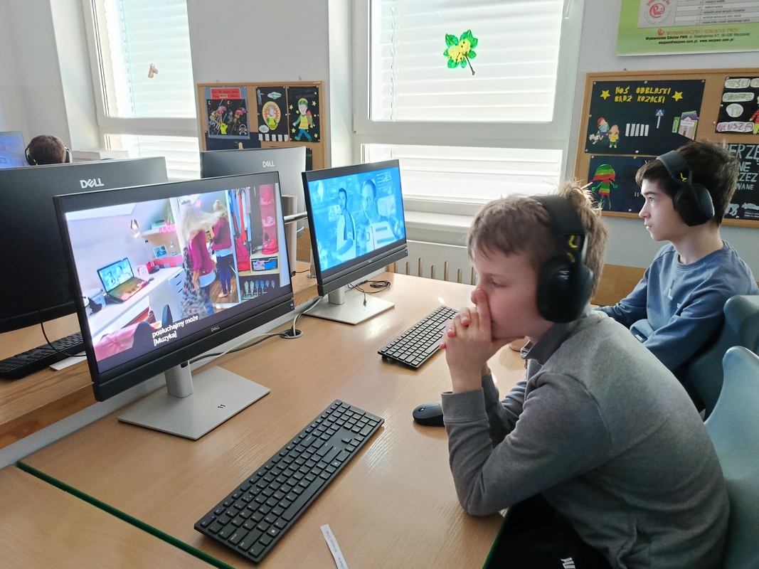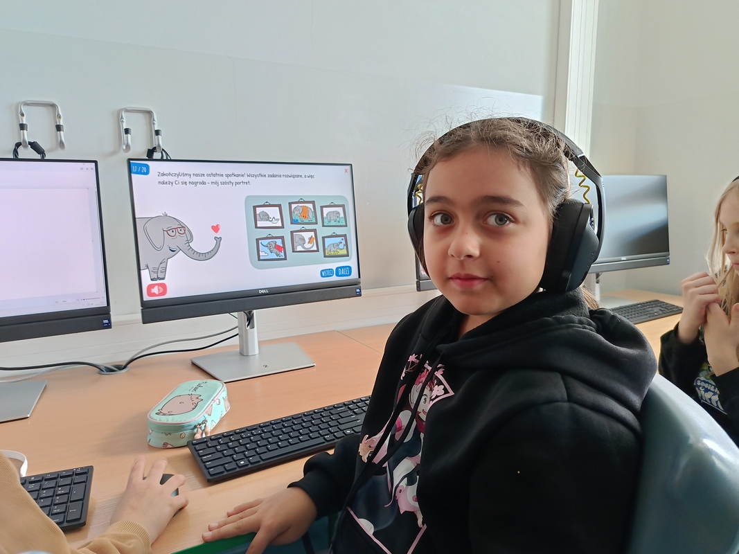 Drugoklasiści przenieśli się do Internetowej Szkoły słonia Spacjusza. Kolorowy, interaktywny, czytany przez lektora kurs okazał się strzałem w dziesiątkę – dzieci z łatwością przyswajały wiedzę o zagrożeniach, zasadach netykiety, reagowaniu na trudne sytuacje i rozpoznawaniu treści nieodpowiednich dla ich wieku. Zajęcia były nie tylko pouczające, ale też bardzo angażujące.