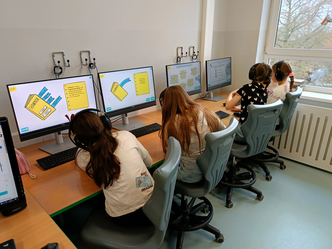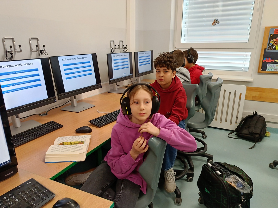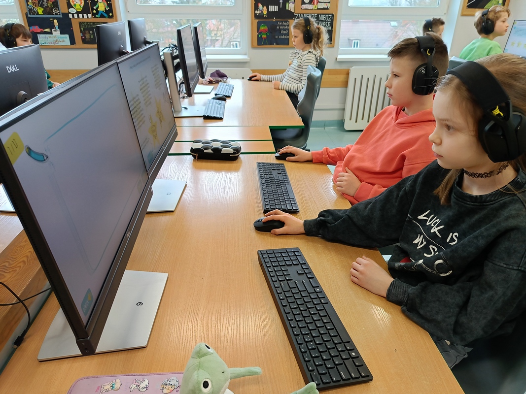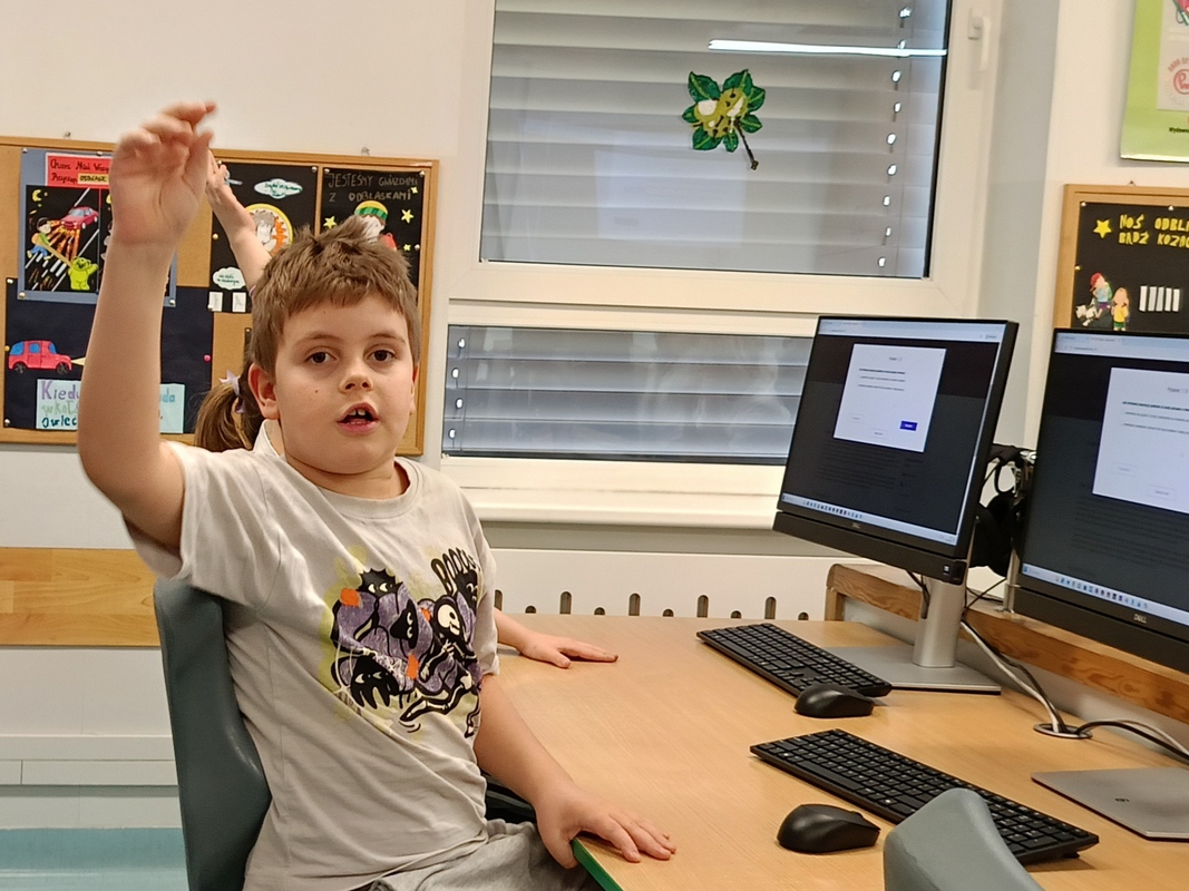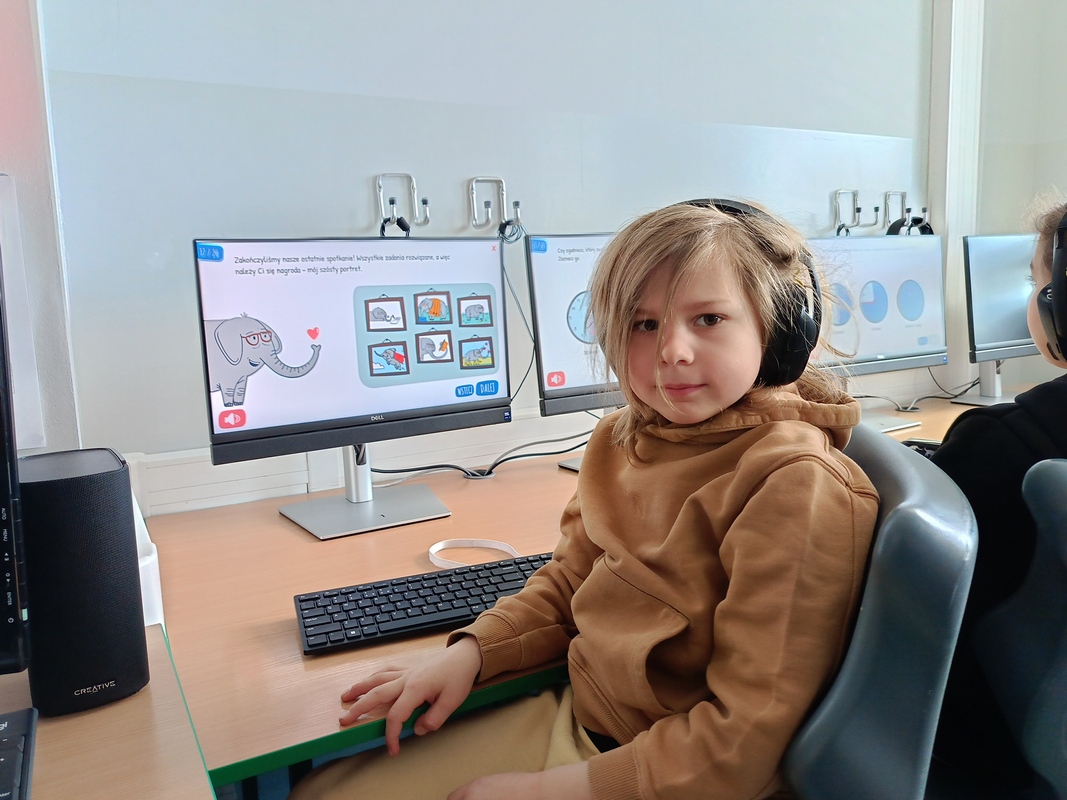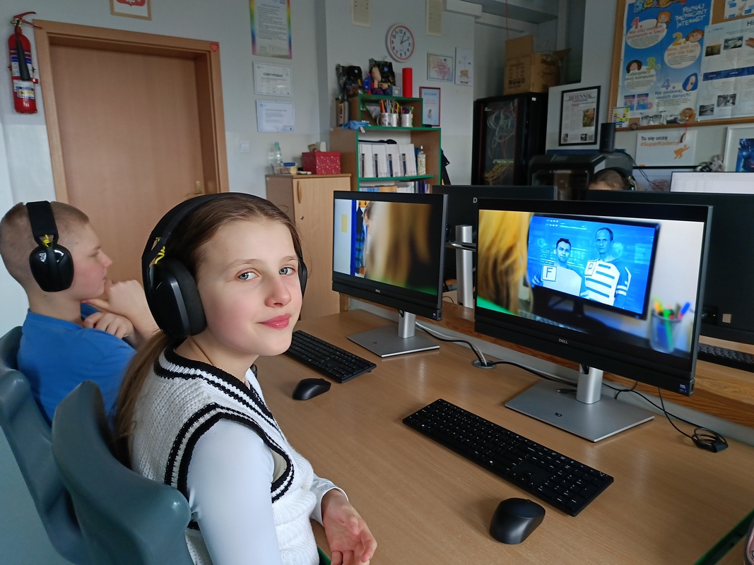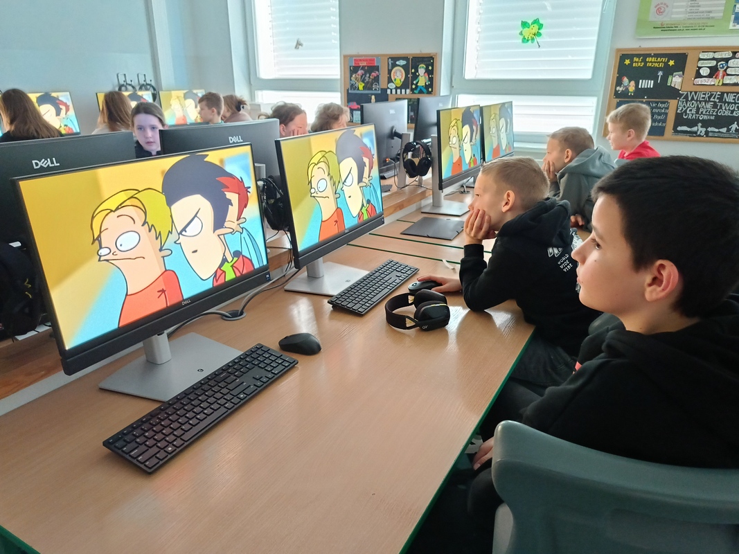 Drugoklasiści przenieśli się do Internetowej Szkoły słonia Spacjusza. Kolorowy, interaktywny, czytany przez lektora kurs okazał się strzałem w dziesiątkę – dzieci z łatwością przyswajały wiedzę o zagrożeniach, zasadach netykiety, reagowaniu na trudne sytuacje i rozpoznawaniu treści nieodpowiednich dla ich wieku. Zajęcia były nie tylko pouczające, ale też bardzo angażujące.
