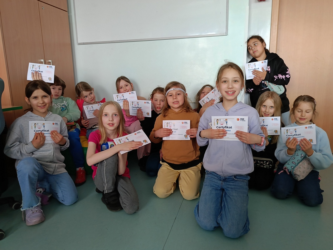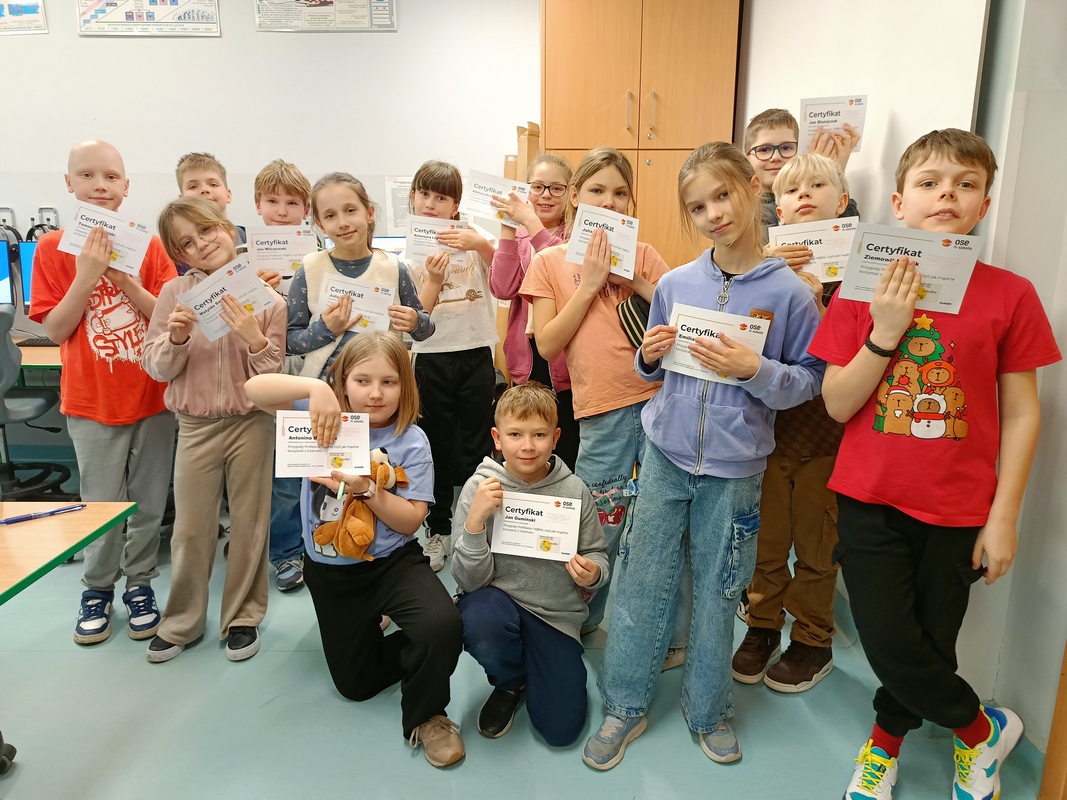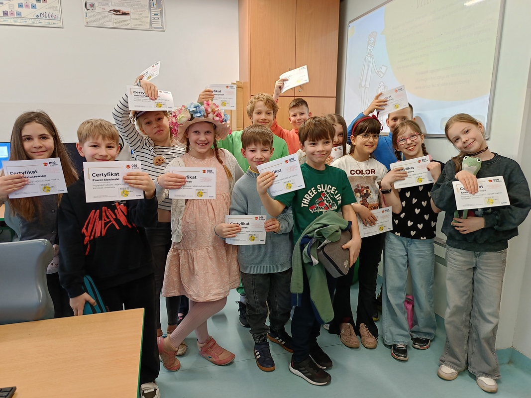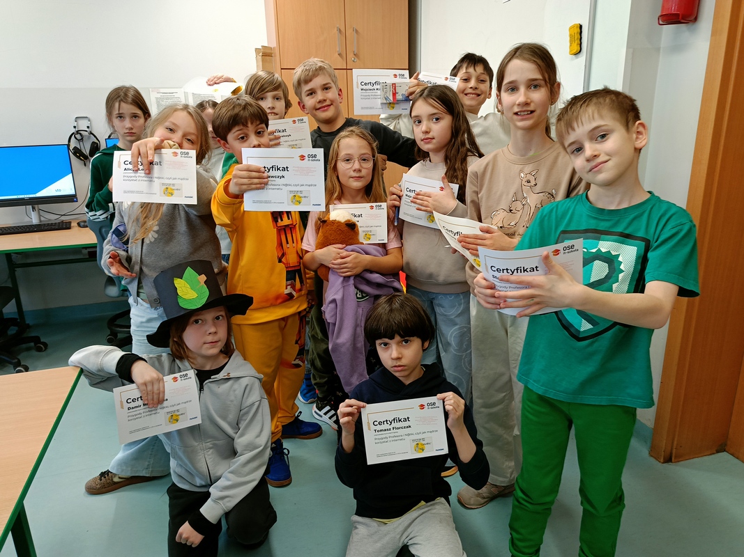 Piątoklasiści wcielili się w „Odkrywców internetu”, realizując czteromodułowy kurs „Plik i Folder”. Uczyli się krytycznego myślenia, reagowania na cyberprzemoc, rozpoznawania zagrożeń oraz twórczego wykorzystywania internetu. Po każdym module odbywała się dyskusja, a na koniec wszyscy uczniowie zdobyli certyfikaty potwierdzające ich cyfrowe kompetencje.