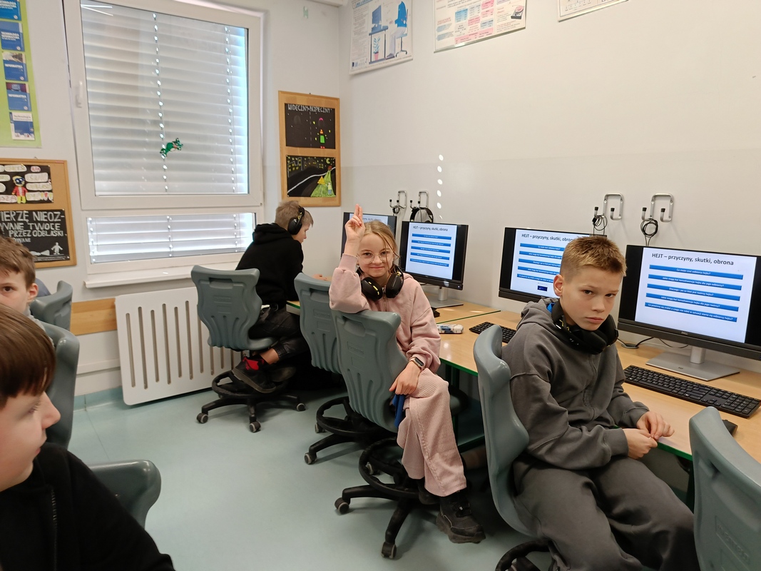 Szóstoklasiści zmierzyli się z tematem hejtu i odpowiedzialności w sieci. Film „Dodaj znajomego” stał się punktem wyjścia do rozmów o zachowaniach internautów, konsekwencjach niewłaściwego korzystania z mediów społecznościowych oraz roli świadka w sytuacjach przemocy online. Uczniowie dyskutowali również o aktualnych pomysłach dotyczących ograniczeń smartfonów i dostępu do mediów społecznościowych w szkołach, chętnie dzieląc się własnymi opiniami.