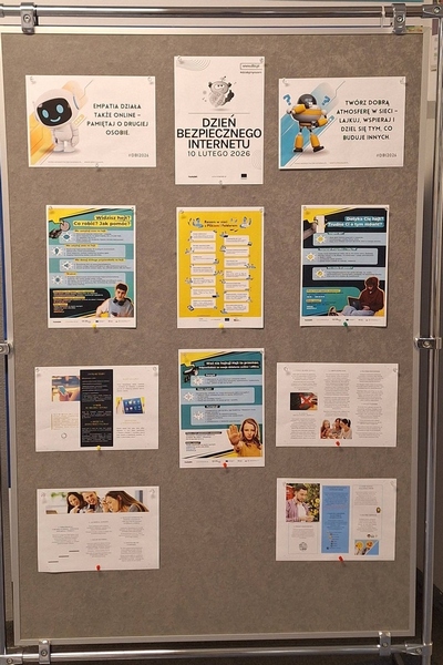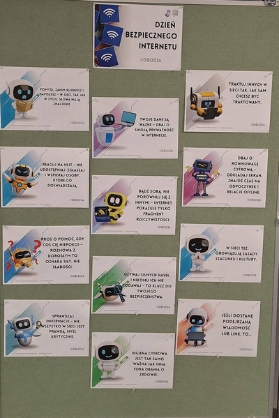 Z okazji Dnia Bezpiecznego Internetu przygotowaliśmy specjalną gazetkę poświęconą bezpieczeństwu w sieci. Na tablicy znalazły się informacje dotyczące: