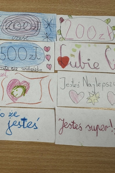 Każdy z nas zaprojektował własne „pieniądze”, którymi można obdarować innych dobrym słowem, uśmiechem i życzliwością. Bo właśnie takie słowa sprawiają, że od samego rana czujemy się lepiej