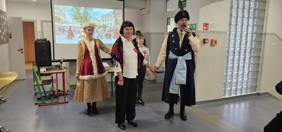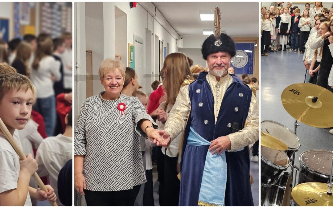W środę, 12 listopada 2025 roku, w naszej szkole odbyła się uroczystość z okazji Święta Niepodległości. Tegoroczne obchody miały wyjątkowo muzyczny i radosny charakter – uczniowie klas 0–8 wspólnie śpiewali pieśni patriotyczne w formie karaoke. Uroczystość uświetnił również pokaz tańca narodowego – poloneza, zaprezentowany przez Rodziców naszych uczniów. Para ta w piękny i przystępny sposób opowiedziała o znaczeniu poloneza w tradycji narodowej, jego dostojnym charakterze oraz zasadach jego wykonywania. Wspólny taniec stał się artystyczną formą patriotyzmu, w której emocje przekazuje się nie słowami, lecz dźwiękiem, rytmem, gestem ciała. Uczeń klasy 8a Tymek pokazał, iż wyrażanie uczuć patriotycznych i miłości do ojczyzny poprzez grę na perkusji to sposób, by łączyć muzyczną pasję z głębokim przywiązaniem do kraju. Rytm perkusji oddawał energię, dumę i siłę narodu!