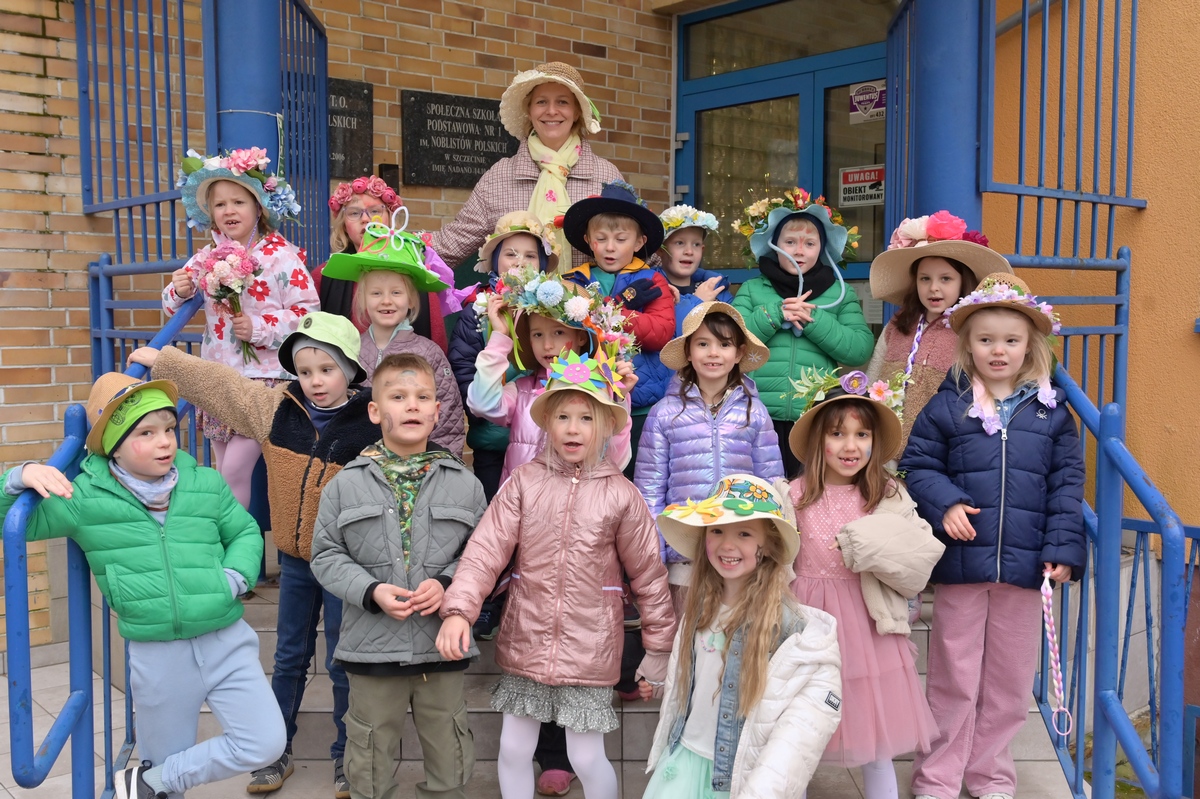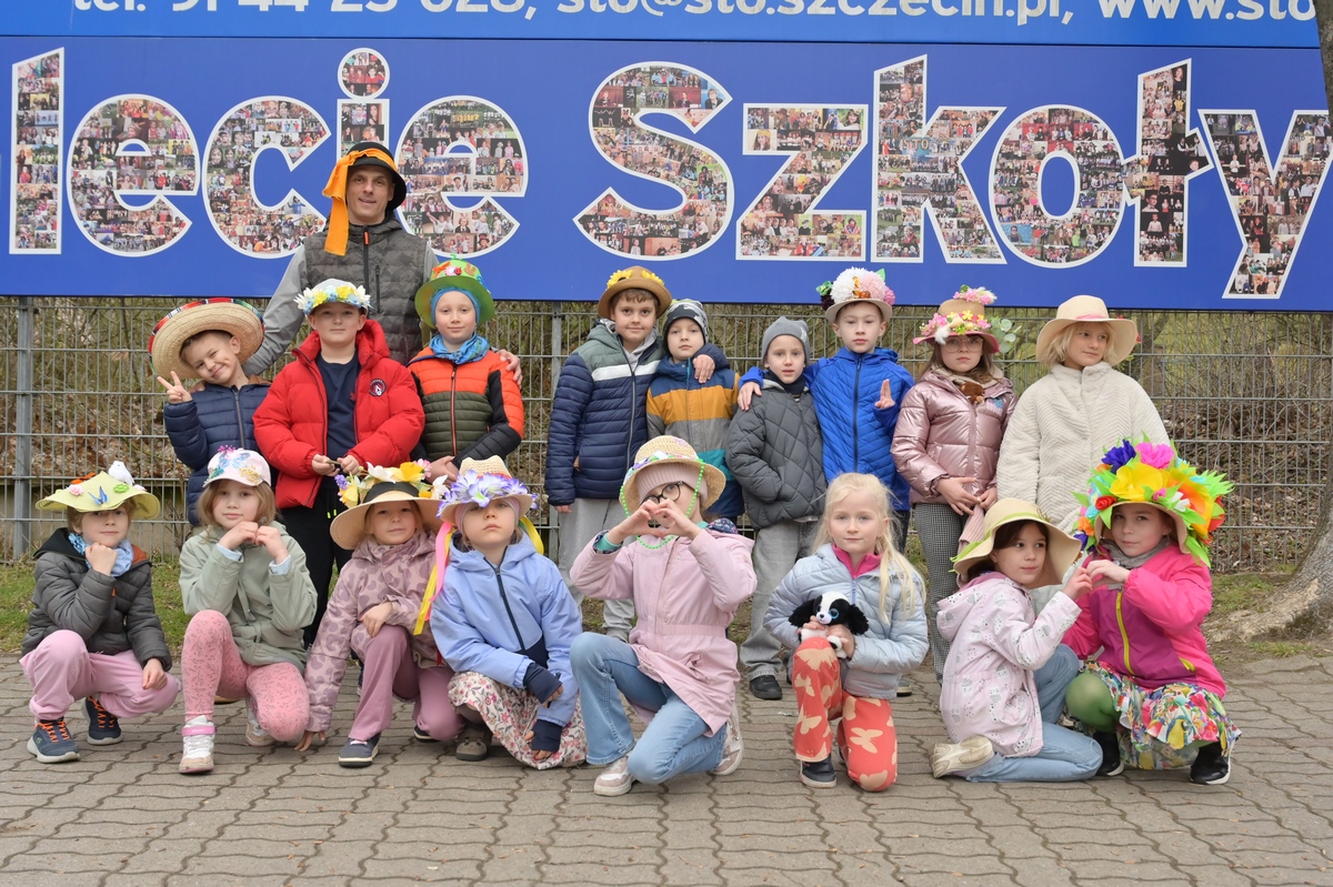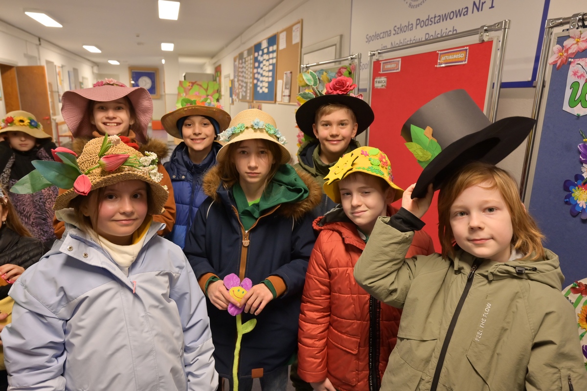W naszej szkole powitaliśmy nadejście wiosny z niewielkim wyprzedzeniem – już w piątek 20. marca. Uczniowie wzięli udział w wyjątkowej zabawie – poszukiwaniu pierwszych oznak tej pięknej pory roku. Nie zabrakło też kolorów i kreatywności podczas Parady Wiosennych Kapeluszy. Każdy mógł zaprezentować swój pomysłowy strój, a szkolne korytarze wypełniły się uśmiechem i wiosenną energią. To był dzień pełen radości i dobrej zabawy!
